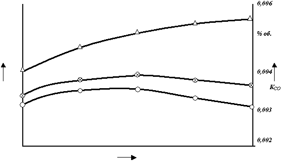 изменение выхода остаточной окиси углерода ( КСО ) при расходе