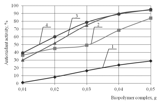 Fig. 1 The antioxidant activity of the biopolymer complexes: