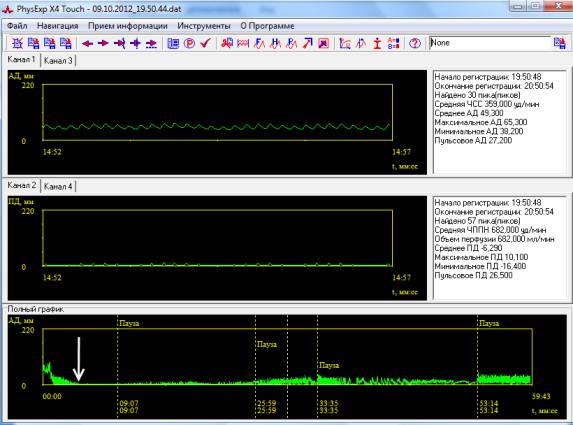 артериальному катетеру присоединяли принимающую линию программно-аппаратного