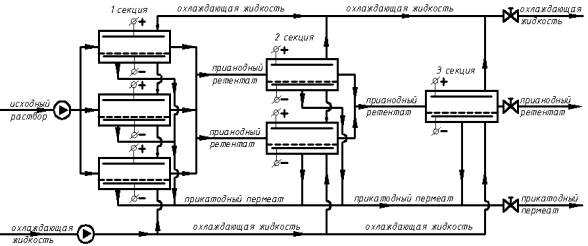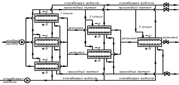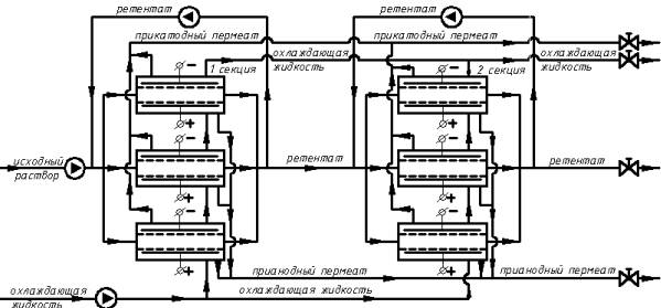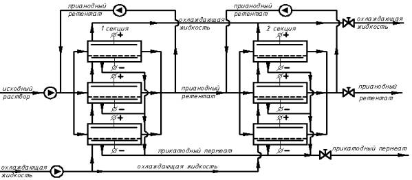 на потоки прикатодного, прианодного пермеата и ретентата с охлаждением, так как