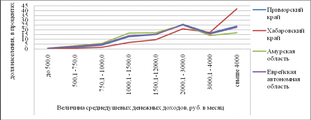Рисунок 2 – Распределение населения по величине среднедушевых