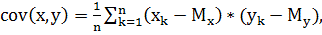 коэффициент ковариации, который характеризует степень линейной зависимости
