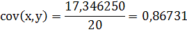 Коэффициент ковариации равен +0,86731, это