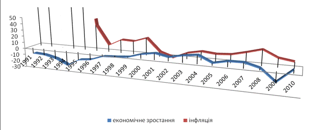 зростанням розглянемо ці два процеси у динаміці з 1991 по 2010 роки (рис. 1.).