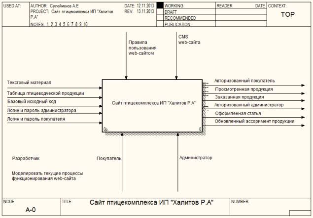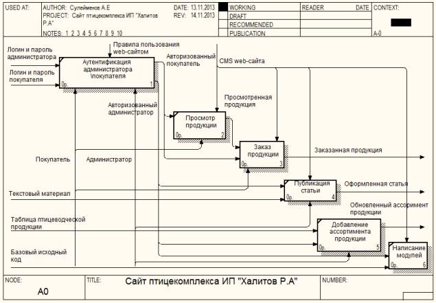 функциональной модели web-сайта птицекомплекса ИП «Халитов Р.А» в программе AllFusion Process Modeler