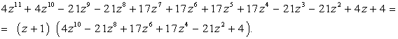 зворотнім рівняння непарного 11 степеня. Згідно теореми розділимо його ліву