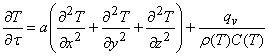 Для расчета температурного поля непрерывнолитого слитка необходимо решить неоднородное уравнение теплопроводности: