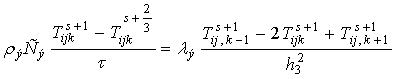 Схема покоординатного расщепления для трехмерного уравнения теплопроводности (3) представлена в виде: