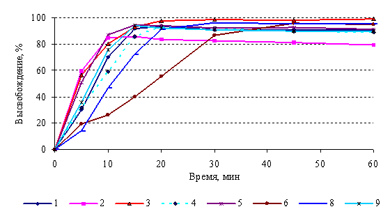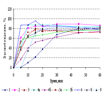 соответствовали все исследуемые препараты: к 30 мин высвобождалось более 80% АФС.
