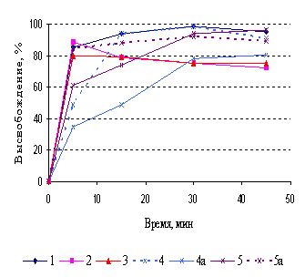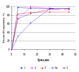 4а) к 15 мин высвободилось соответственно 48,9 % и 94,1% (разница