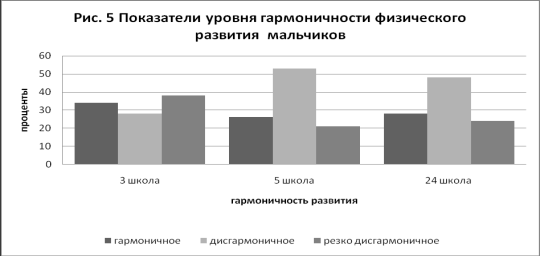 В сравнении с данными за последние годы, показатели гармоничности физического развития имеют стойкую тенденцию к снижению, как у мальчиков, так и у девочек. Такая тенденция свидетельствует не только о негативном влиянии внешних факторов окружающей среды, но и о снижении адаптационных возможностей организма в данной популяции в целом [4].