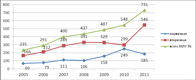 (МЛУ-ТБ). При этом в последние годы отмечается регистрация больных туберкулезом