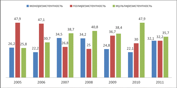 монорезистентностью и мультирезистентностью увеличилось с 26,2% до 32,1% и с