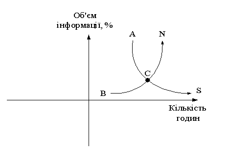 процес інформаційної війни. Точка С – це той час дискусії, в якому кількість утаємничених,