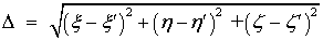 - расстояние точки P(ξ,η,ζ) (рис. 1) от текущей точки P′(ξ′,η′,ζ′);