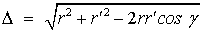 радиус-векторы точек P и P' , через γ — угол между ними, то Δ и γ можно записать в виде