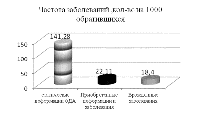 распространенности патологии опорно-двигательного, по данным осмотров детей в