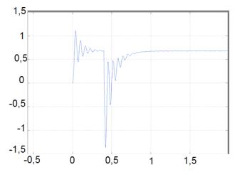 резкий перепад обусловлен подключением нагрузки через 0,4 секунды после