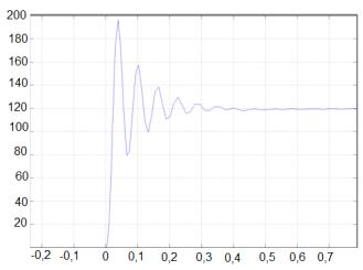 Для убеждения в правильности работы Simulink-модель устанавливается другая величина скорости 120 рад/с,