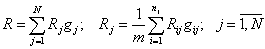 где Rij— балльная оценка i–ro фактора в j–м виде риска; gij — вес i–го фактора в j–м виде риска; nj — число учитываемых факторов в j–м виде риска; m — размах балльной шкалы, в пределах которой осуществляется оценка факторов; gj — вес j–ro вида риска; Rj — количественная оценка j–ro вида риска; R — обобщенный показатель риска.