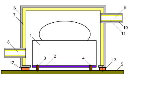 например мягкой резины, виброизолирующие опоры 12 и 13, и установленный на них