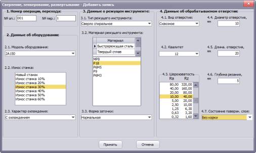 предназначена для расчетов режимов резания при обработке на сверлильных,