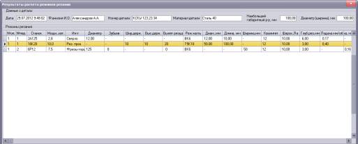 сохраняются в базе (рис.2). Результаты режимов резания можно
