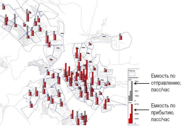Показатели емкости транспортных районов по