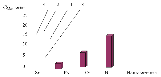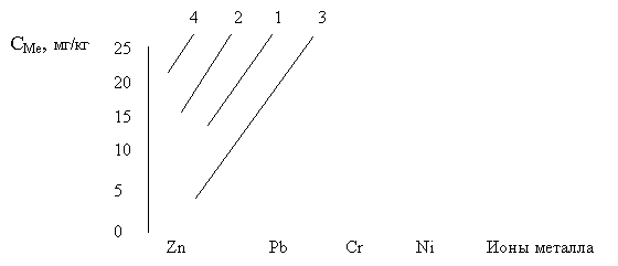 почвы, имеющие рН=4,5-5,8. В кислой среде соединения Cd, Co, Mn, Ni, Cr, Zn находятся в растворимой форме, при этом в растворе присутствуют ионы Mez+