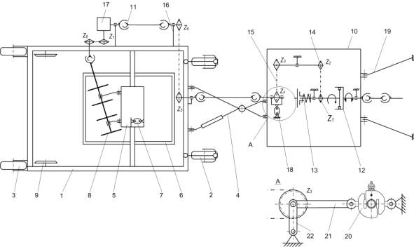 звено 20 соединенное шарнирной тягой 21 со звездочкой Z3, которая установлена