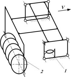 1 – тензозвено; 2 – батарея ротационных рабочих органов