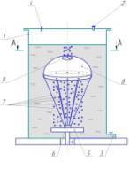 днищі розміщений аератор 5, у центрі аератора встановлений програмний пристрій