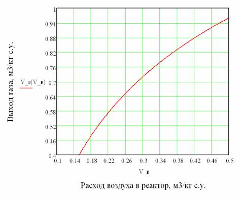 газообразных продуктов пиролиза является функцией расхода воздуха в реактор