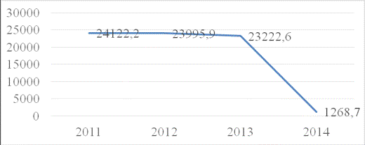 2011-2013 роками, що є негативним явищем, адже саме на кінець 2014 року