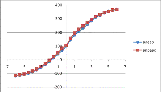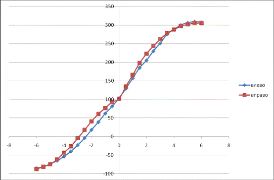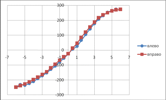 в данной точке при перемещении рукоятки вправо, Xл – при перемещении