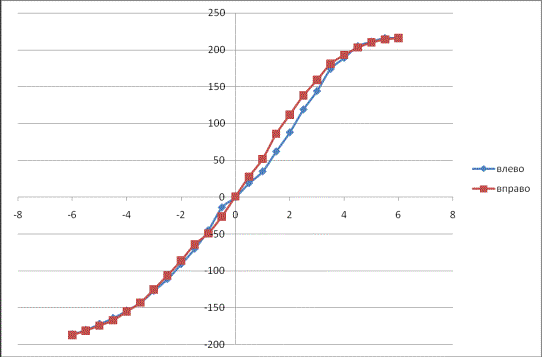 поверхностная диаграмма зависимости показаний министика от отклонения рукоятки