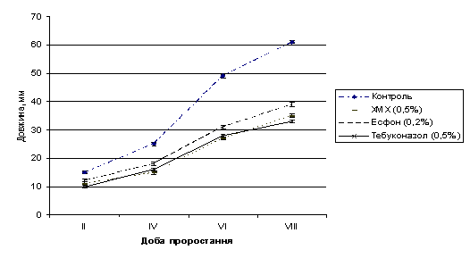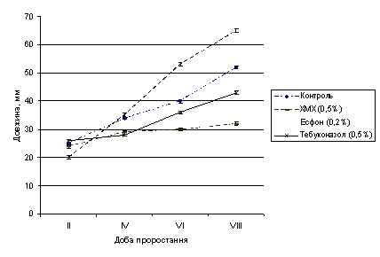(0,2%) довжина гіпокотелей збільшувалася на 25 % у порівняні з контролем, тоді як застосування триазолпохідного