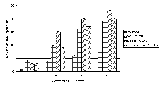 есфоном. У даному варіанті кількість бічних коренів збільшувалася у 2,9 рази.