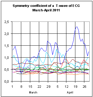 сердечной деятельности человека, в частности, коэффициент симметрии Т-зубца