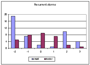 после начала бурь как малой, так и умеренной интенсивности. Для рекуррентных