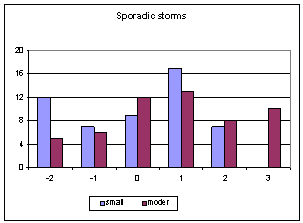 исследуемые интервалы времени было 6 спорадических бурь (3 малых и 3 умеренных)