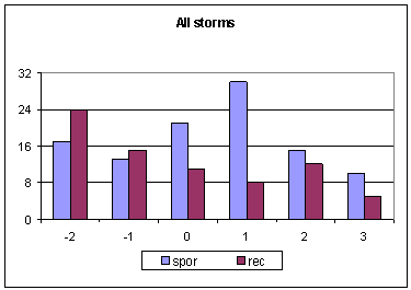 для умеренных небольшое возрастание заметно в 0 день бури.