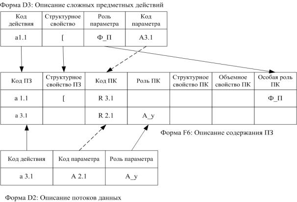 связей предметных категорий); динамические отношения фиксируются в форме F3 (описание предметных зависимостей) и форме F4 (описание системы предметных зависимостей – упорядоченности