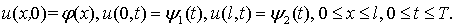 нового типа организма, т.е. в момент времени t = 0, задается функцией φ(x), а ее изменение на границах среды x = 0 и x = l за все