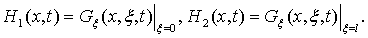 Решение уравнения (4), как и в последствии уравнений (3), определяется с помощью функции Грина G(x, x, t) для параболического уравнения: