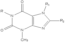 Рис. 1 Производные 1-R-7-R1-8-R2-3-метил-1Н-пурин-2,6(3Н,7Н)-диона.