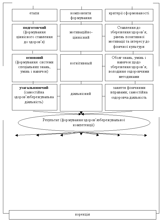 Результати дослідження. В побудові технології формування здоров’язбережувальної компетентності на основі дослідження була