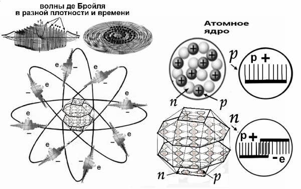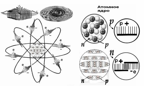 и располагаются внутри ядра по Боровским орбитам из-за способности эфира