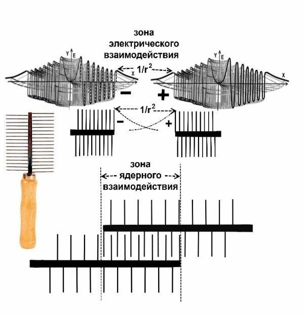 расчёски - это хорошо (приблизительно) отображает. Ядерное взаимодействие