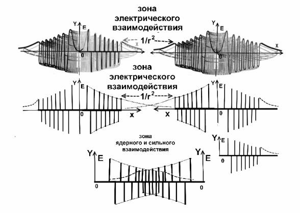 Рис.11.Зоны ядерного взаимодействия внутри ядра